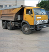 A Dumper truck used for transporting loose material (such as sand, gravel, or dirt) for construction. A typical dump truck is equipped with an open-box bed, which is hinged at the rear and equipped with hydraulic pistons to lift the front, allowing the material in the bed to be deposited ("dumped") on the ground behind the truck at the site of delivery..